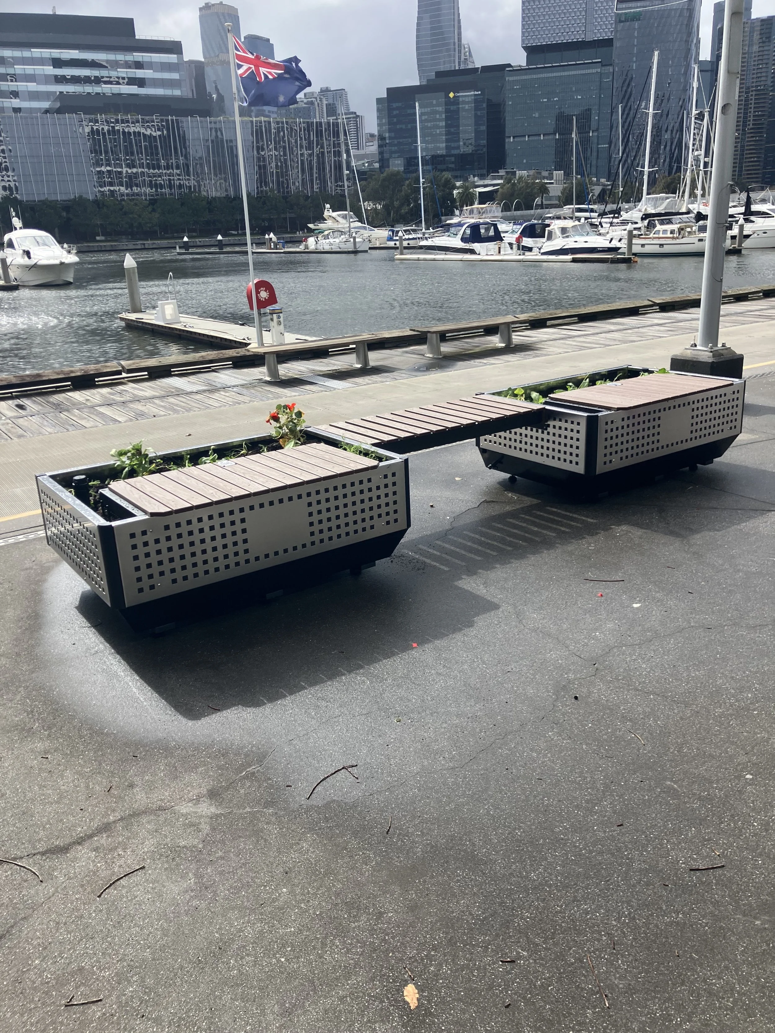 • Two coolseats with connecting seat facing the Yarra River at Yarra Edge, Melbourne