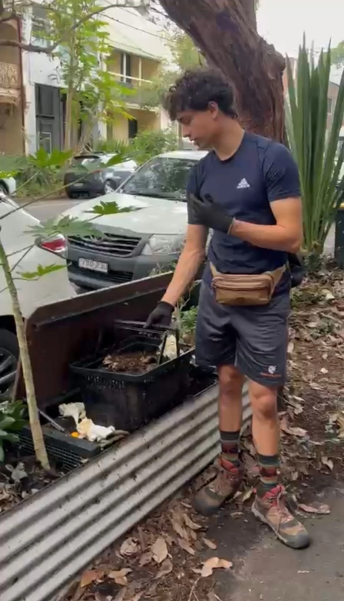 • T J demonstrating a compost option in a Chippendale footpath garden - a coolseat
